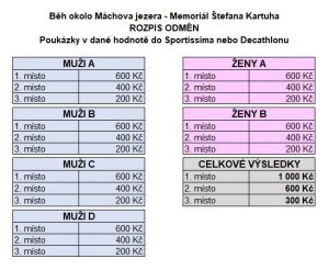 • první tři závodníci v celkovém pořadí hlavního závodu obdrží poukázku do sportovních obchodů